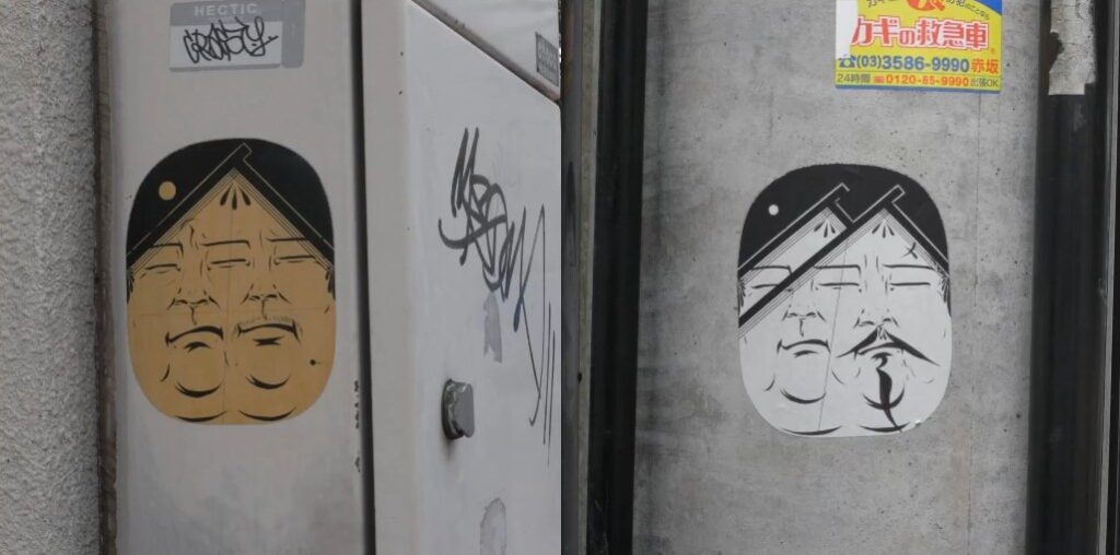 Why stickers, though? In Japan, stickers are the main form of street art, unlike other countries. While it is normal to see graffiti over walls and trains in Europe and the Americas, in Japan, graffiti is not that prevalent. The reasons for this are varied. Japan has strict laws on vandalism and many street cameras, but there is also a large cultural difference from the West. Japanese tend to not like to permanently damage others’ property, even in the form of street art. And stickers do not damage property; they can be easily removed while still offering a similar form of expression as graffiti. Also, stickers are much more easily placed undetected than your typical sprayed graffiti.