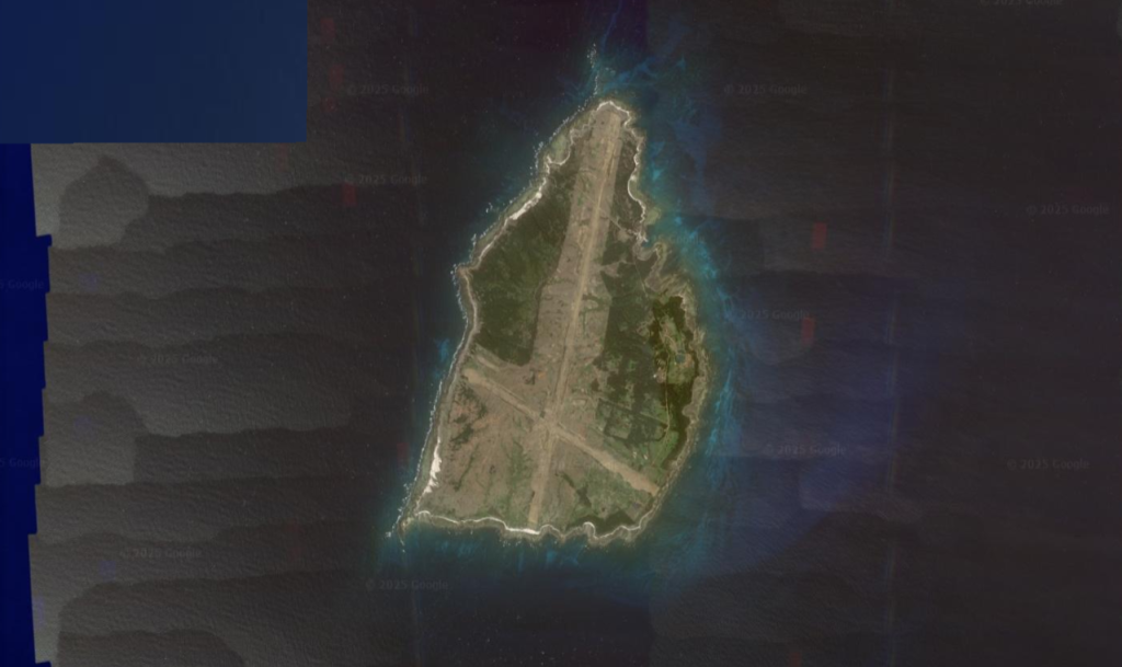 Mageshima on a satellite picture from 2023. You can clearly see the outline for the two runways planned. (Source: Google Earth)