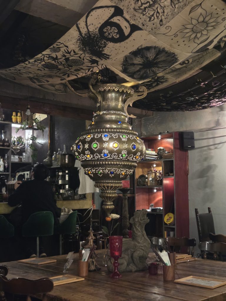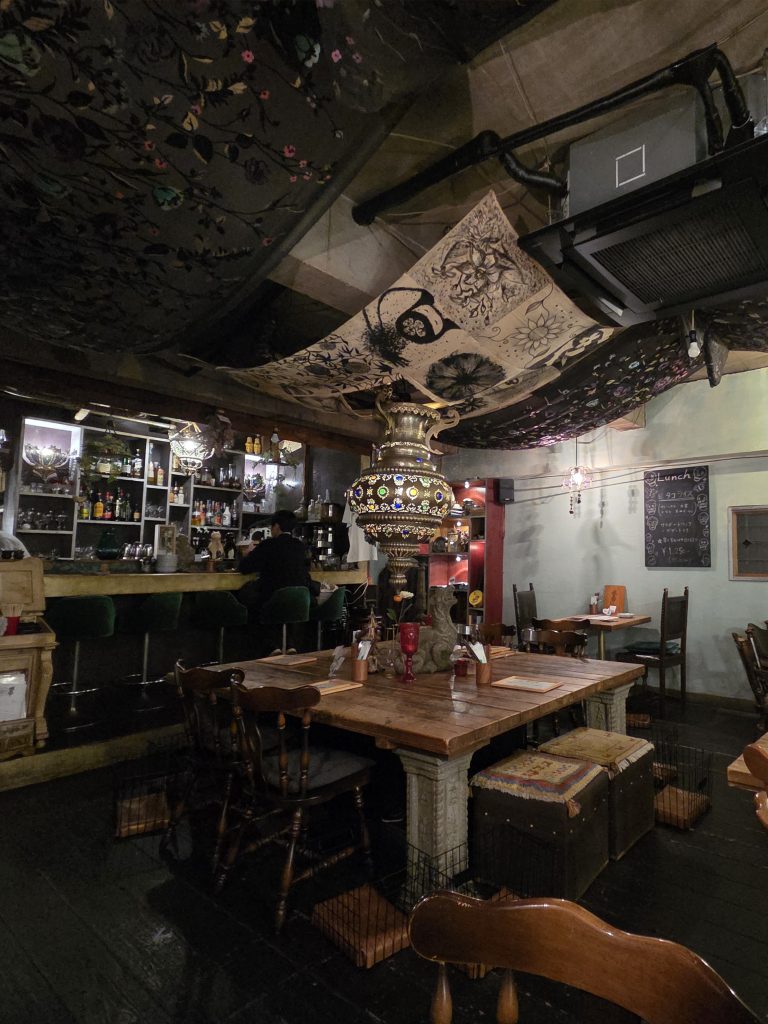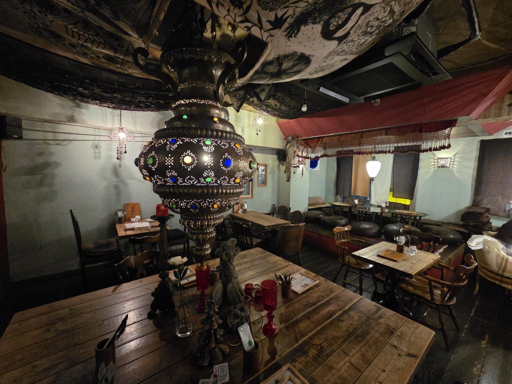 The theming is based on Morocco, as the owners traveled extensively through the country and were inspired by it. The lighting is dim, and calming music plays throughout the restaurant. You are immediately struck by the peaceful atmosphere, which was exactly what I needed after spending the whole day exploring Kichijoji and nearby Nakano. In the middle of the restaurant is a huge Moroccan lamp, which makes for a really cool centerpiece.