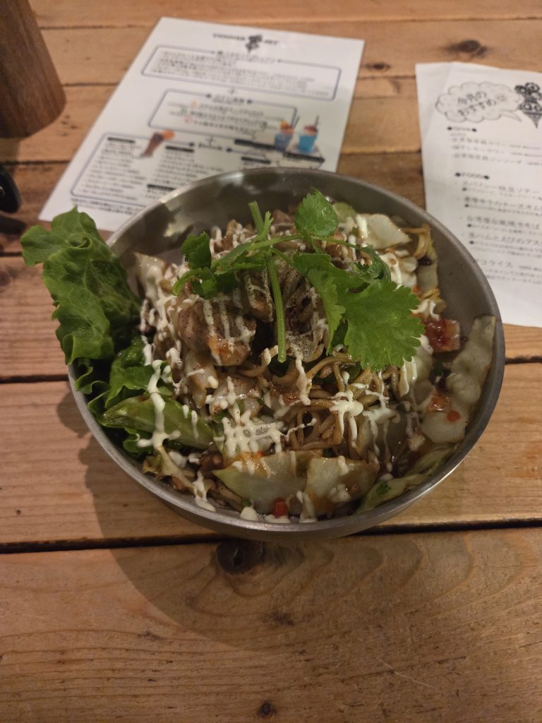 The edamame beans paired well with the beer — a surprisingly nice combo that I will now be missing back home. For the main dish, I ordered a Taiwanese noodle dish, which was delicious. The noodles were cooked perfectly, the spice level was on point, and I really appreciated the generous amount of fresh coriander leaves, as I absolutely love the taste.