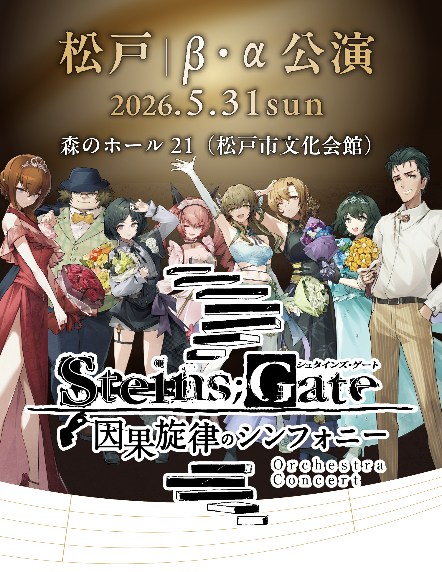 The event is scheduled to take place on May 31, 2026 at Mori no Hall 21 in Matsudo, featuring orchestral arrangements of music from across the Steins;Gate series.